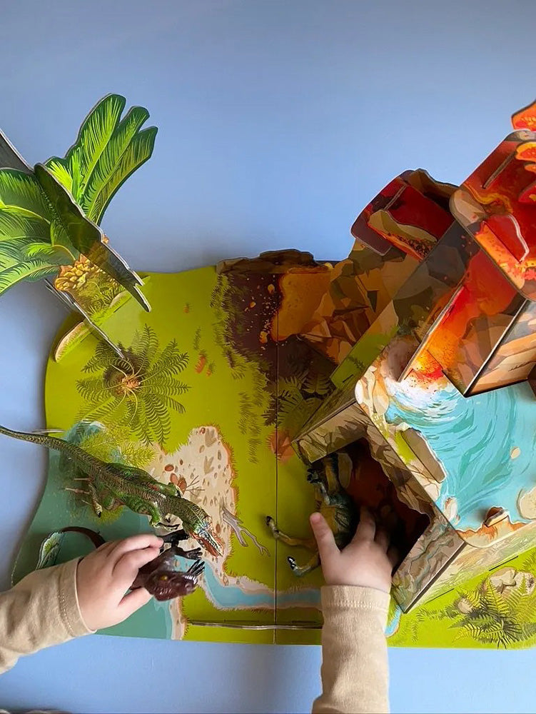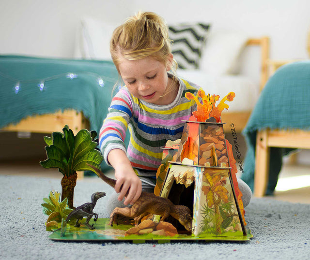 Don't call it a comeback! We've been here for years! For over 25 years, Papo creations have been bringing playtime to life with realistic, hand-painted figurines. This sturdy cardboard playset will transport you back to a time when the dinosaurs reigned, over 228 million years ago. Go on the hunt with the predatory T-Rex or fly over a volcano with a Pteranodon. Makes the perfect setting for all your Papo dino figurines! Dinosaurs sold separately.