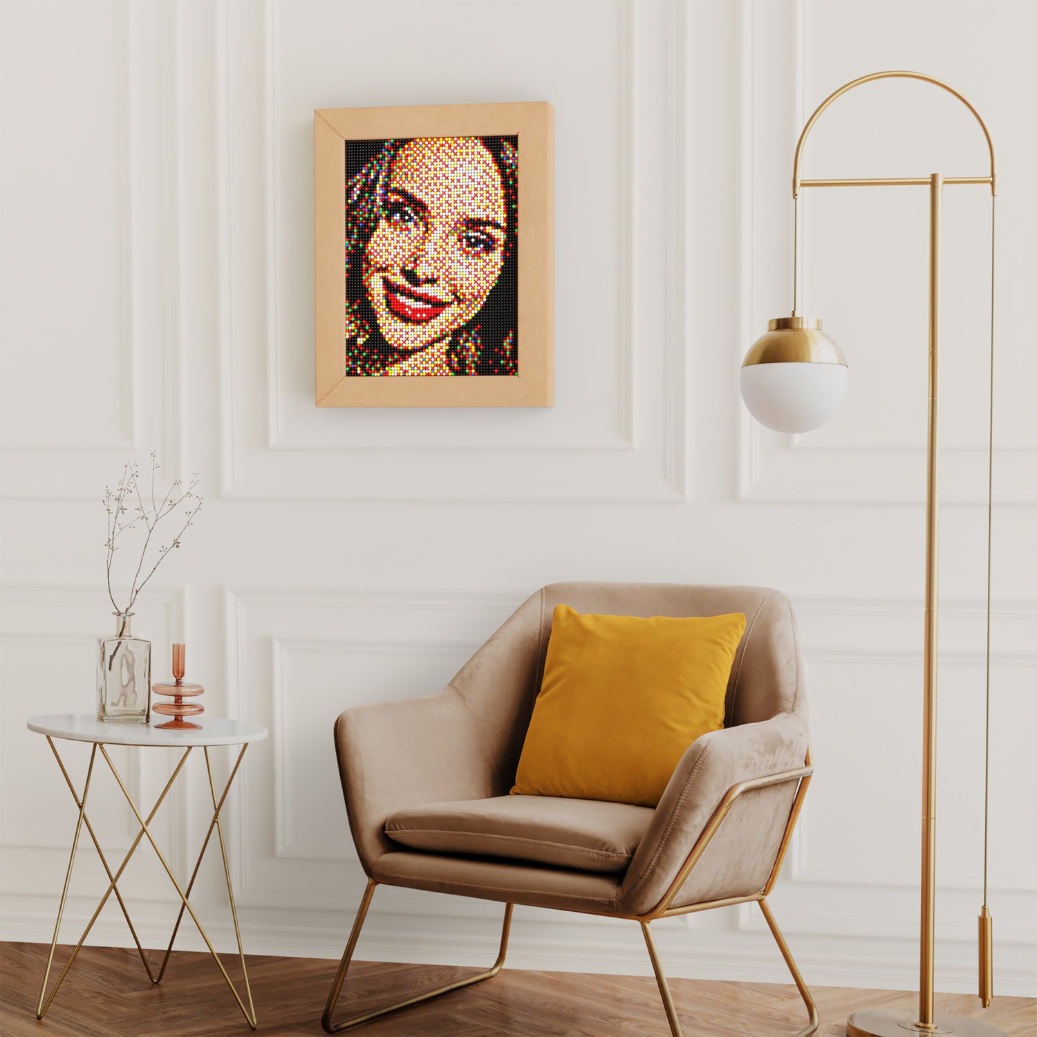 Take a selfie with the pegs and hang it up in the house like a painting. Framed and viewed from the right distance, it looks like a real photograph.