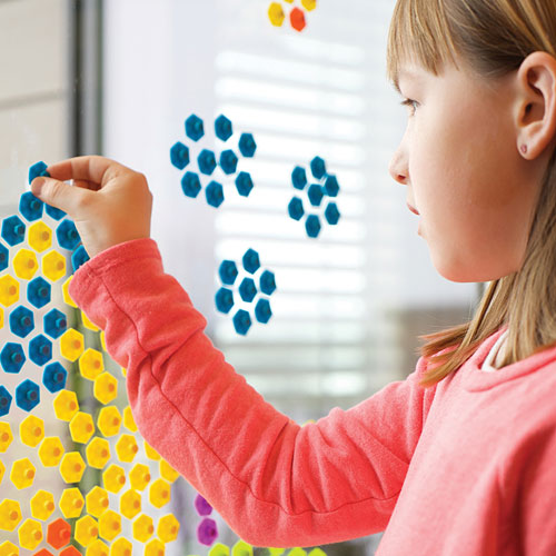 Making art with hundreds of colorful suction cups is an afternoon of pop-pop-popping possibility! These mini-hexagons nest like little pixels for gapless art projects on any non-porous surface.