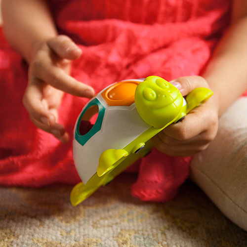 With the Pop & Slide Shelly, the early tactile learning excitement never stops!