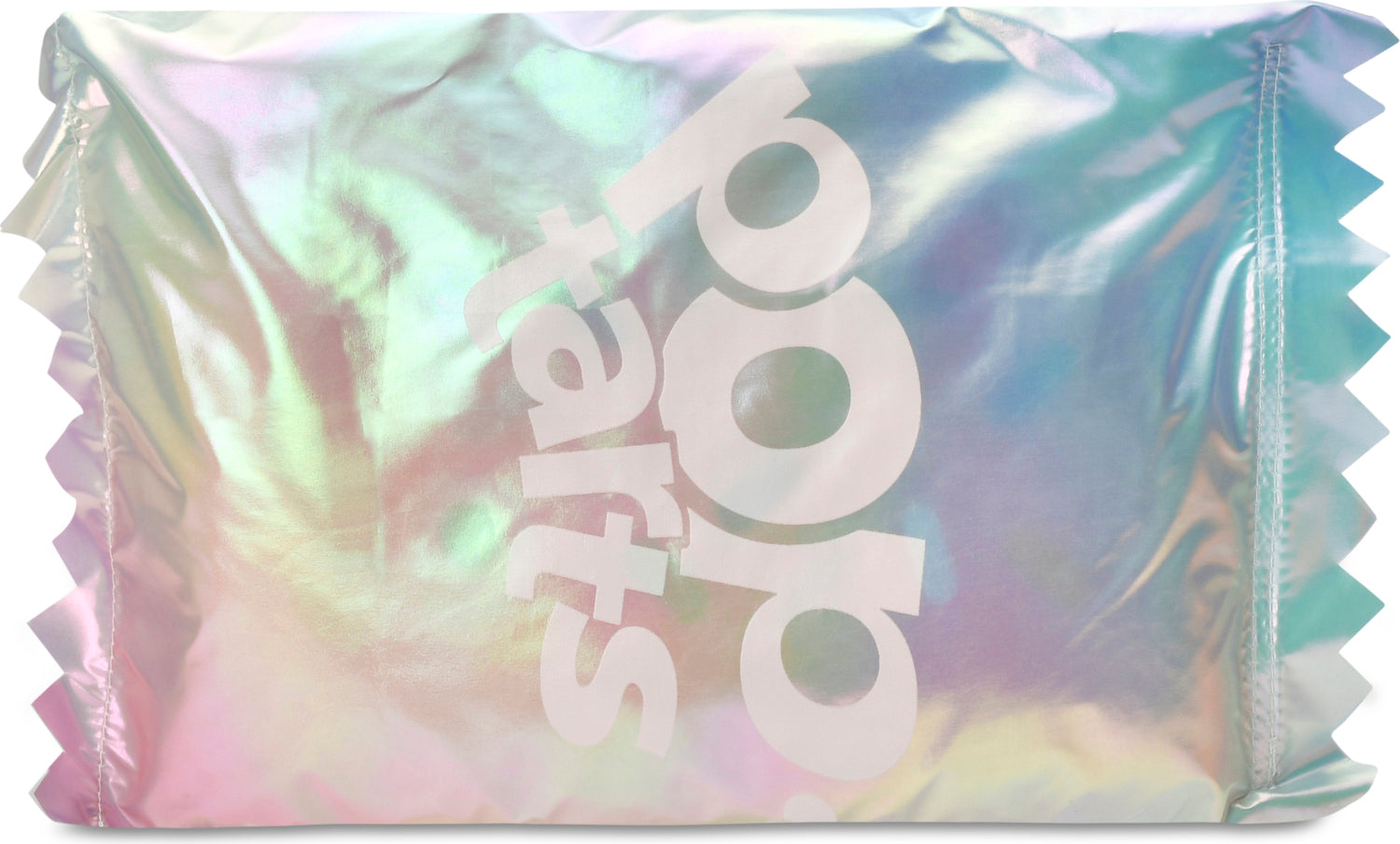 Soft, sweet, nostalgic: reach inside this oversized plush Strawberry Pop Tarts package to discover 2 treats! One smiley-face plush Pop Tart is hiding inside a velcro-closure holographic fabric bag, ready for the toaster. The other Pop Tart already has a tiny bite out of one corner! Measures 14" x 8" x 4.5" and is fun for teens and adults.