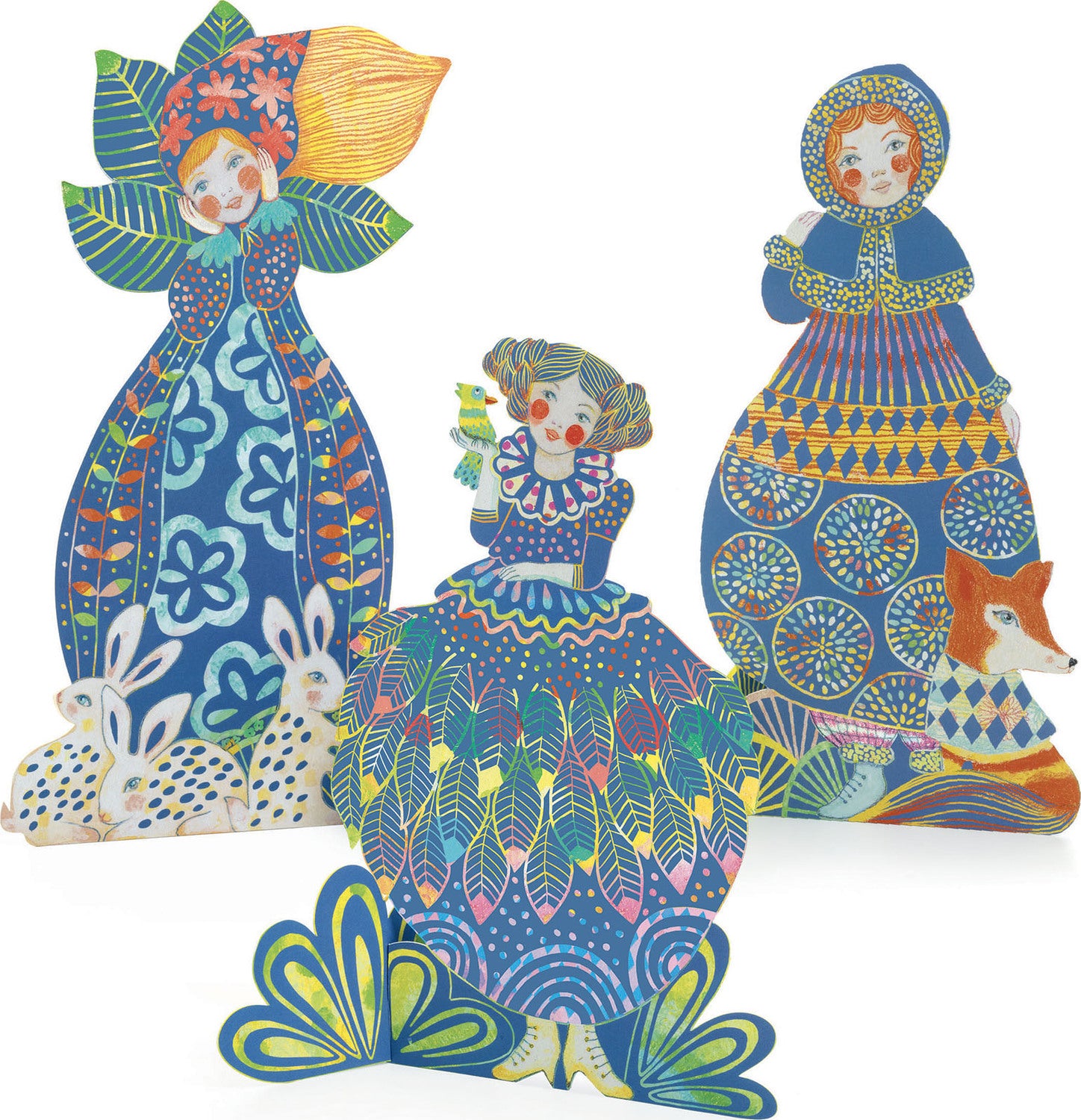 This pack contains 3 scratch cards to be transformed into sculptures to the delight of children! Using the wooden stylus, they reproduce the designs dreamed up by the artist by scratching the surface of the cards. They then assemble pedestals and figures to display them as real works of art.