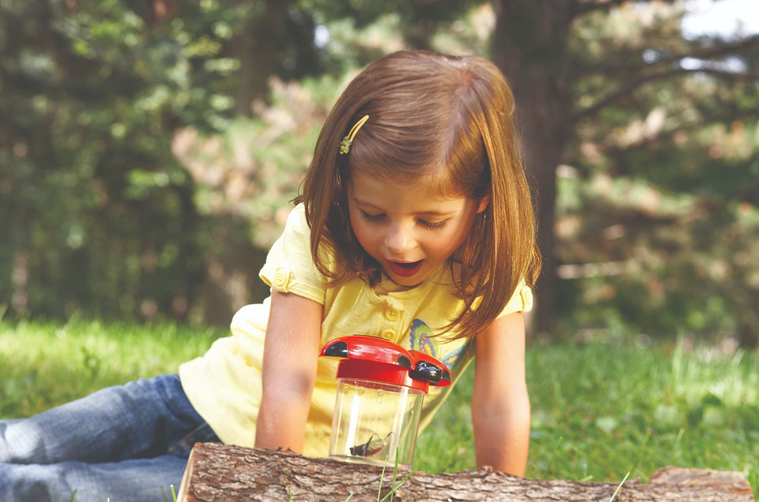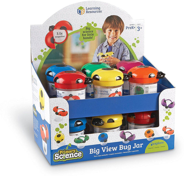 Colorful jars have ladybug wings that open to invite little learners to investigate insects. Even children who normally shy away from bugs will be excited to capture and observe critters (and other items) in these engaging observation jars. Wings open to reveal a 3.5x magnifying lens. Screw-on cap and air vents keep specimens secure. Durable plastic jars measure 4.5"H x 3.5" in diameter. Grades PreK+ - Ages 3+