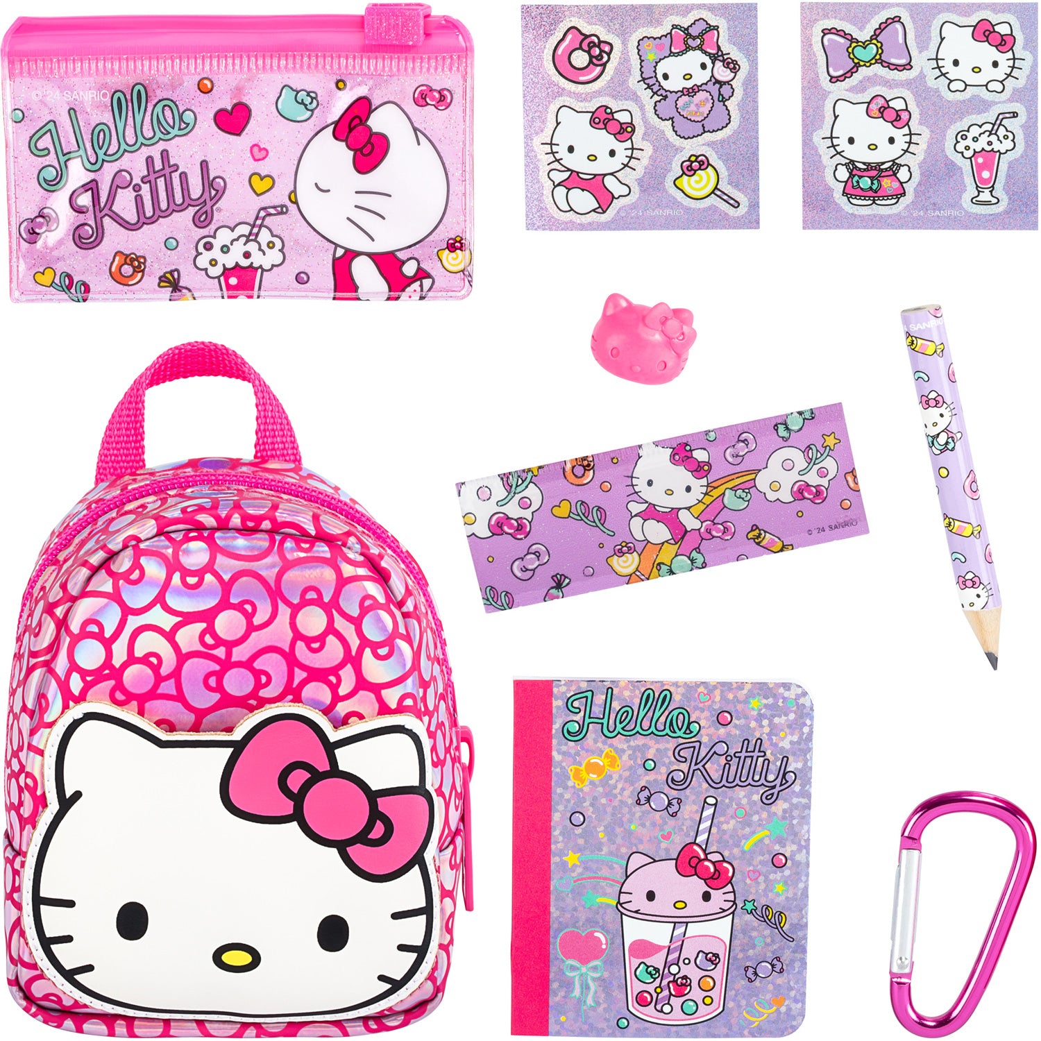 Unzip a world of miniature delight! These enchanting backpacks, adorned with beloved Sanrio characters like Hello Kitty, Kuromi, and Cinnamoroll, are bursting with all-new mini collectible surprises. From tiny working pencil cases to novelty pens and stickers, each brings the fun and functionality of Sanrio stationery to life in micro-form. Collect and trade all 5 styles, each sold separately.