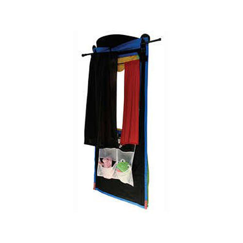 Put on a big show right in your own home. The Carnival Doorway Puppet Theater is perfect for entertaining or nurturing little puppeteers at home. This set featurs bright colors, a spring-loaded curtain rod with working curtains, a large fold-out stage, four storage pockets and a curved backdrop to hide performers. It is the perfect addition to any schoolroom, daycare, playroom or child's room. When the show's over, just roll up the theater and store it in its custom storage bag which includes outside pockets for puppet storage. Theater measures 64-by-32 inches, with a stage opening of 24-by-22 inches.Carnival Doorway Theater is perfect for little puppeteers at home