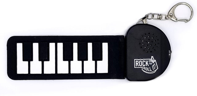 A keyboard on a keychain - the key to happiness. Don't be fooled by the size! Soft, silicone rubber with a keychain for bands on the run. A portable piano to spread the sound of musical joy. Battery included.