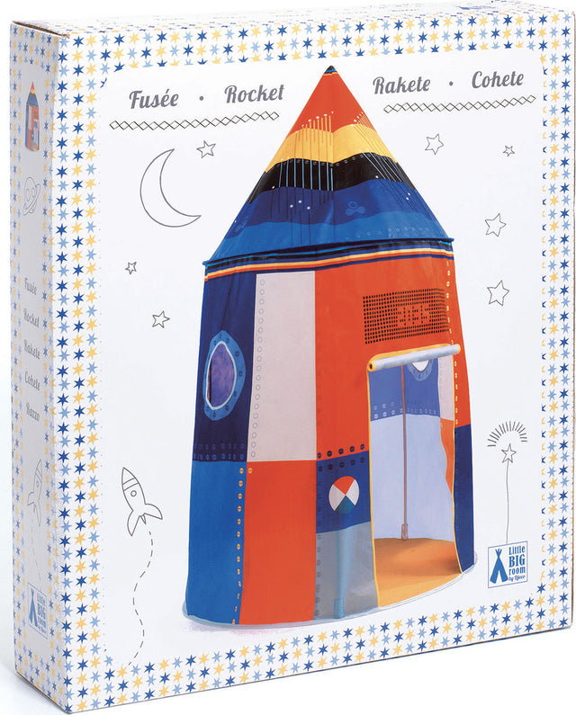 A rocket-shaped tent! With its futuristic design, windows and door that closes, this beautiful rocket welcomes the dreams of little astronauts who set off on the greatest adventures in space!