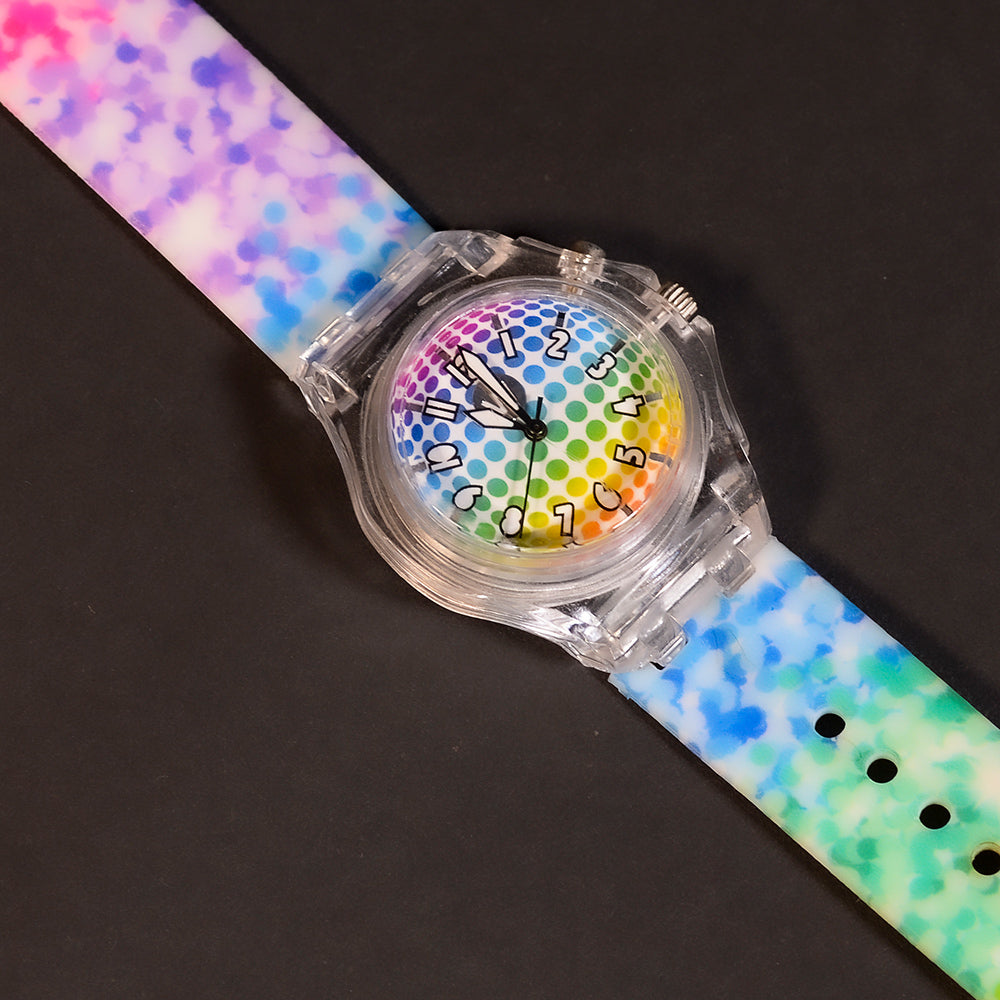 It's glow time! Watchitude’s glow watches have LED lights built into the watch case which displays bright colors. Available in an assortment of patterned silicone bands. Makes the perfect gift!