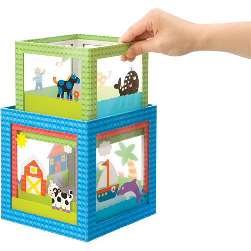 4 See-through boxes with 4 colorful scenes.