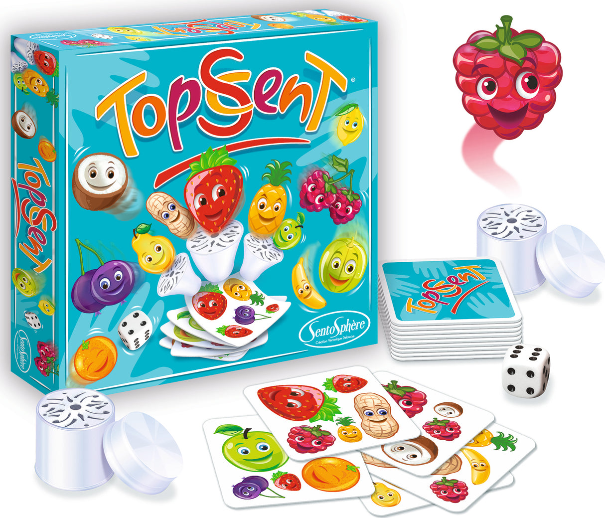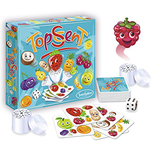 Put your sense of smell to the test with Topscent, a fun party game by the French toy maker SentoSphere. This simple game features 96 bright adorable fruit cards and 12 aroma diffusers. Players identify the various scents and roll the die to discover the number of times their fruit character needs to show up on the cards! Once the cards reach that number the player will hit the pack and collect those cards. The player with the most cards at the end of the game wins. Children will use their olfaction skills and enjoy sniffing out a winner! Game play is approximately 15 minutes, making this perfect for a slumber party activity! This game is recommended for 6 years of age and older and is designed for 3 to 6 players.