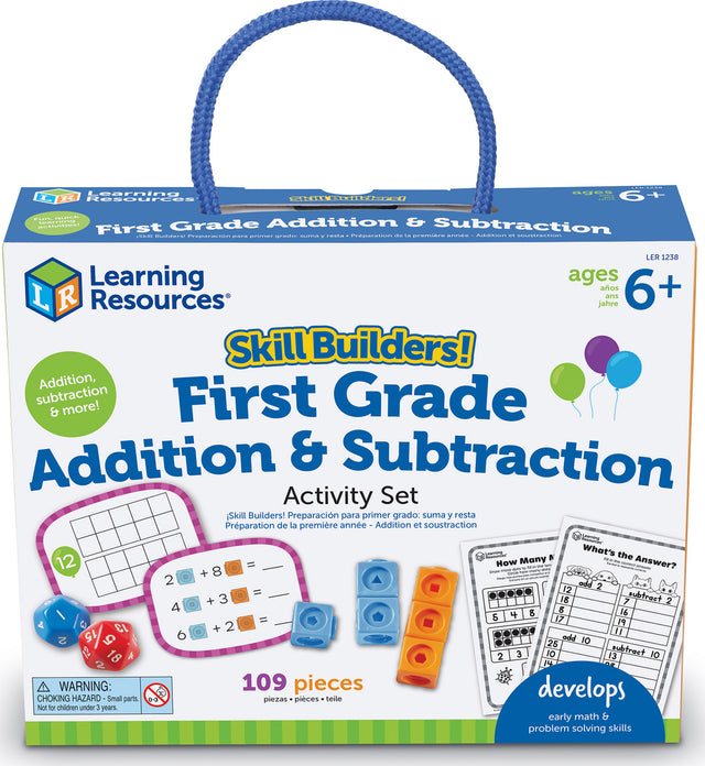 Play your way to elementary-ready math skills with these fun, quick activities! This set's hands-on activities help kids learn and retain lessons in addition, subtraction, problem solving, and other 1st-grade math skills through fun, active play. Plus, the built-in carrying case lets you take the learning on the go.
