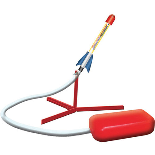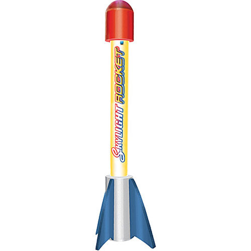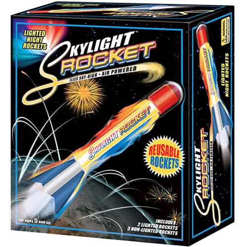 Enjoy high-flying fun without the hazards. Just jump on the air-powered launch pad and send the rocket soaring! You get 5 rockets in all, 3 for daytime and 2 that light up with red and blue LED flashing lights for spectacular nighttime shows. Adjustable stand also included. For ages 5-10 yrs.