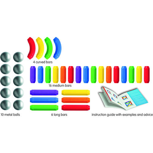 The extra-large pieces make it easy for small children to manipulate them. The magnets have the ideal strength for easy assembly and breakdown of constructions. The outstanding colorfully-illustrated booklets in each set guide you through the basics of magnetic phenomena, show ways to strengthen structures, the steps in building towers and bridges, and carefully present the construction projects in easy to very-difficult sequence. Perhaps most importantly, of course, children thrive on the creative satisfaction of dreaming up their own wonderfully imaginative magnetic assemblies!