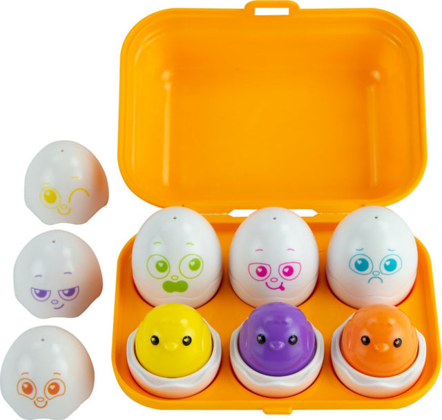 Encourage creative play with the brightly colored Lamaze Sort & Squeak Eggs. Removing the top shell reveals a little chirper inside. Pressing down on the chick rewards baby with a fun chirping sound. Learn colors by matching the correct face color on the top shell to the chick. Each face features a different expression which allows you to teach your baby about happy, sad, silly and more.
