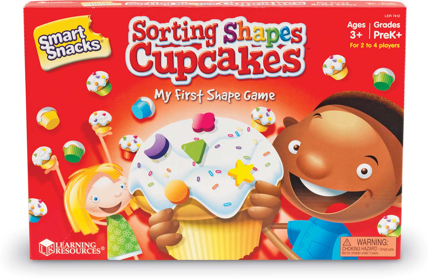 Early board game extends the learning, and the fun, of our Sorting Shapes Cupcakes (LER 7202). Reinforces shape recognition, attributes, matching (visual and tactile discrimination) and following directions. Children roll the die, move the pawns around the cupcake top, and fill in their cupcake puzzle card. Includes Activity Guide and game board that measures 14"L x 12 3/4"W. For 2-4 players. Grades PreK+ (Ages 3+)