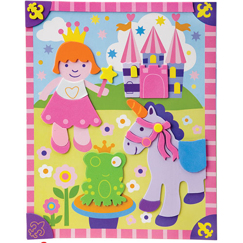 Layer adhesive foam pieces to create a colorful 3D scene. Each kit includes lots of stickers, printed board with fold-out stand, and easy instructions. Garden and Princess themes include stick-on gems.