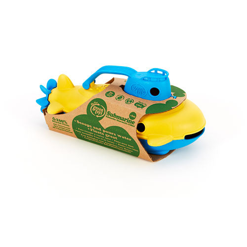 Take the helm of the My First Green Toys Submarine for a nautical journey to help protect the planet! Submerge it underwater to explore the terrain at the bottom of the tub, and let it resurface to scan the horizon in search of the next earth-friendly adventure. Made in the USA from 100% recycled plastic milk jugs that save energy and reduce greenhouse gas emissions, this sturdy watercraft features a spinning rear propeller, a flat bottom for added stability, and the classic handle and wide-mouth opening combination for plenty of scoop-and-pour fun. The cabin can be opened for easy cleaning, while the whole vessel is also dishwasher safe. No BPA, phthalates, PVC or external coatings, and also meets FDA food contact standards. Packaged with recycled and recyclable materials and printed with soy inks. Recommended for ages 6 months and up.