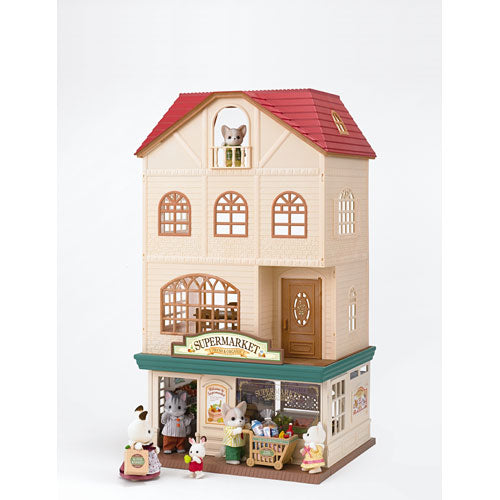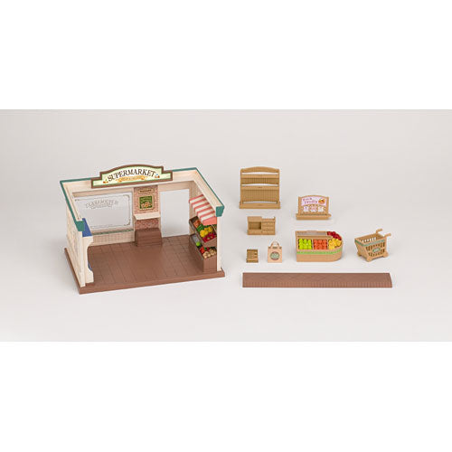Critters enjoy shopping for yummy, healthy food! With over 100 pieces including fruits, vegetables, bread, fish, canned food, drinks, cookies, ice cream, shopping cart, check-out counter with cash register, display stands, and much more! Supermarket measures 11.5" x 9" x 6".