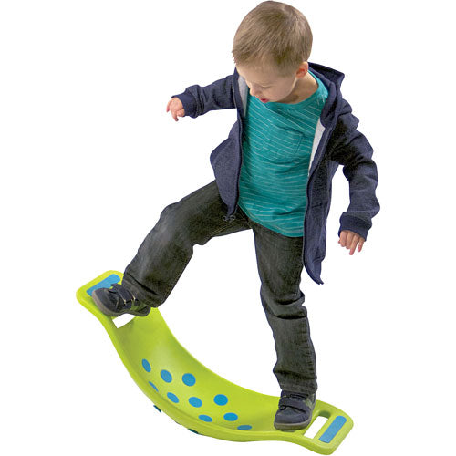 Tip the scales toward adventurous play with this unique plastic marvel! Suction cups underneath go “pop, pop, pop!” as kids stand, sit, rock, tilt and wobble. To kids, it’s “extreme” physical fun. They’ll have no idea that they’re improving core strength, stability, balance, coordination, concentration and motor skills! About 28" long, for kids up to 110 lbs. From Fat Brain Toy Co for ages 3-8 yrs.