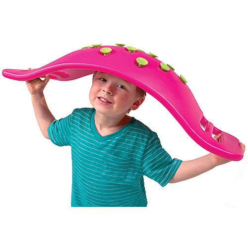 Tip the scales toward adventurous play with this unique plastic marvel! Suction cups underneath go “pop, pop, pop!” as kids stand, sit, rock, tilt and wobble. To kids, it’s “extreme” physical fun. They’ll have no idea that they’re improving core strength, stability, balance, coordination, concentration and motor skills! About 28" long, for kids up to 110 lbs. From Fat Brain Toy Co for ages 3-8 yrs.
