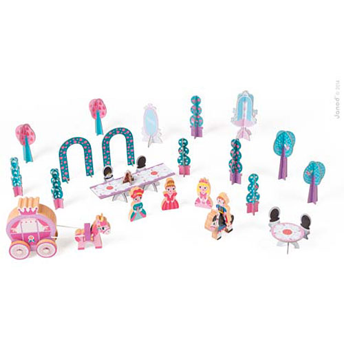 Every princess needs a castle, period. And once she unfolds this magic box, with all its play figures and cardboard cutouts, she may never leave the manicured grounds! A large 16-pc. puzzle forms the garden and moat around the castle. High quality, happily-ever-after materials and construction. From Juratoys US Corp, for ages 4-8 yrs.