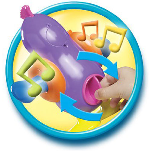 Wind up the Penguin and lie him on his back in the water and hear him hum "Row Row Row Your Boat" as he flaps his arms and swims through the water