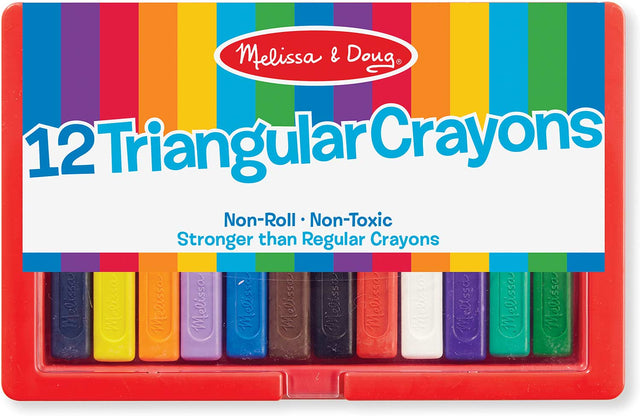 With bold colors and an ingenious, triangular shape, these crayons are made of plastic, not wax, for additional durability. With their easy to grasp design, they won"t roll away! This 12-color assortment comes in a sturdy, plastic, flip-top case. The unique shape will help develop the preferred grip for later writing skills.