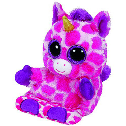 My spots are pink My horn is gold I'm really cute That's what I'm told Ty has launched a line of smartphone holders, called Peek-A-Boos. Ty Peek-a-boos are universally compatible with all brands of smartphones. The plush phone holders allow you to use your smartphone hand-free, as the Beanie Boo eyes take a peek at what youre doing. The plush phone stands have screen cleaner bottoms too. The initial Peek A Boos lineup includes: Uni unicorn, Penni penguin, Pups St. Bernard and Chimps monkey. They can also be used to hold business cards, gift cards, other small electronic devices, even candy bars. -- Official Ty product with the authentic Ty heart-shaped tag -- Handy screen cleaner bottom -- For Videos, Games, Facetime, Text, Instagram, Facebook Posts