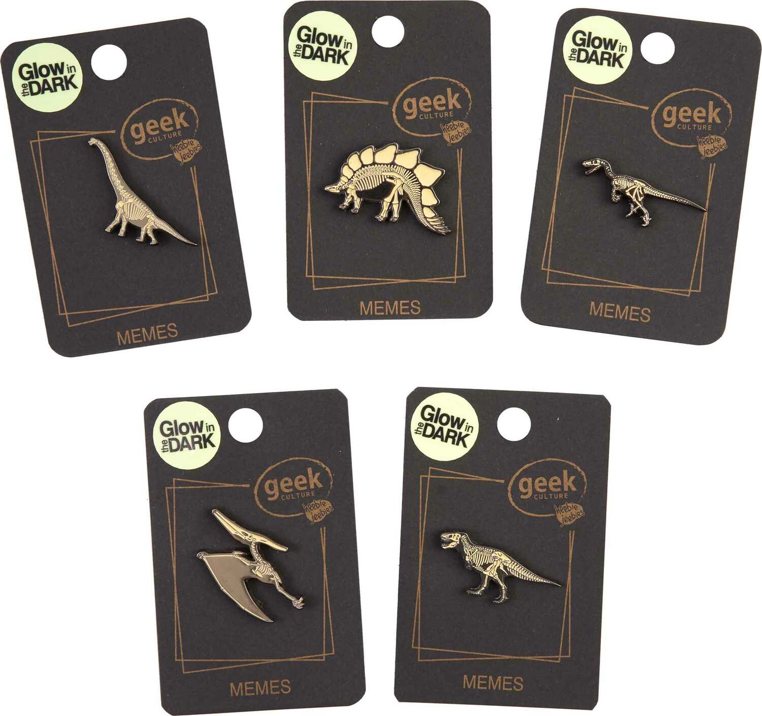 As a scary dinosaur's skeleton or an archaeologist's fossil find, either way, our fun Dinosaur Skeleton Pins will look cool displayed on your camera strap, jacket, or backpack. This enamel pin badge is perfect for any dinosaur lover, or even as a gift for yourself. These iconic dinosaur silhouettes have glow-in-the-dark enamel bones, making them a fun statement both day and night.