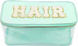 If you haven't seen these...they are all the rage! This is a clear vinyl bag with a gold zipper. It measures 10" x 5" x 6".
