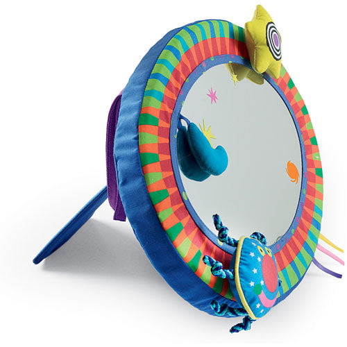 Babies are fascinated by mirrors... And themselves! Our soft-constructed mirror promotes self-discovery with its vivid colors and 3D characters that crinkle for added fun, visual stimulation, and tactile exploration. Attaches easily to most cribs or use the easel-back to put the mirror on the floor for much needed tummy time.