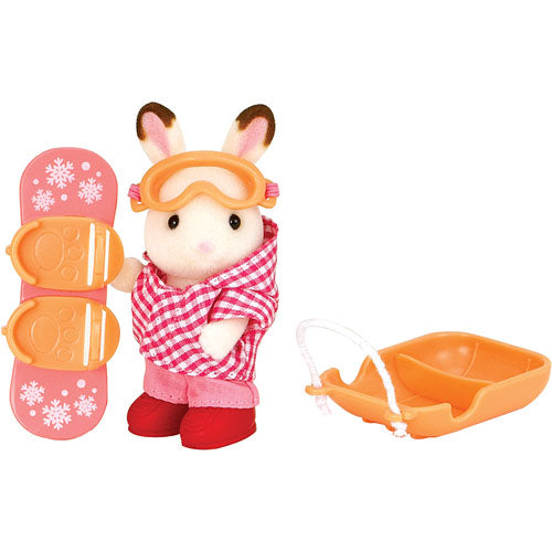 Critters have tons of fun snowboarding and sledding in the winter! Includes Bell Hopscotch rabbit in winter outfit & snowboard boots, snowboard, sled with tow rope, and goggles.