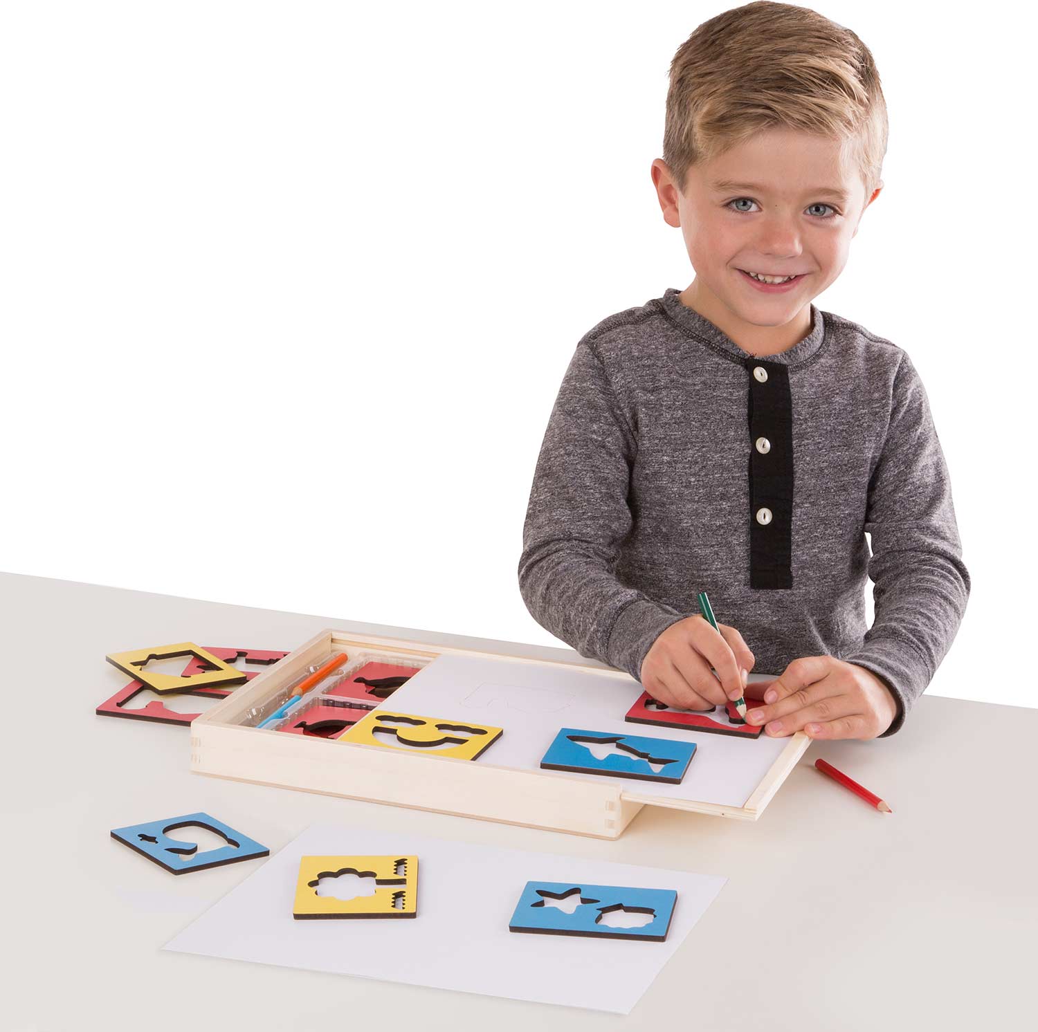 Children will have endless fun expressing their creativity and making up stories with this expansive set of wooden stencils. The sturdy stencils feature animals, houses, trees, cars, and more, and the rainbow of colored pencils give kids plenty of options for personalizing their creations. A great way to promote fine motor skills, creative expression, storytelling skills, and more.