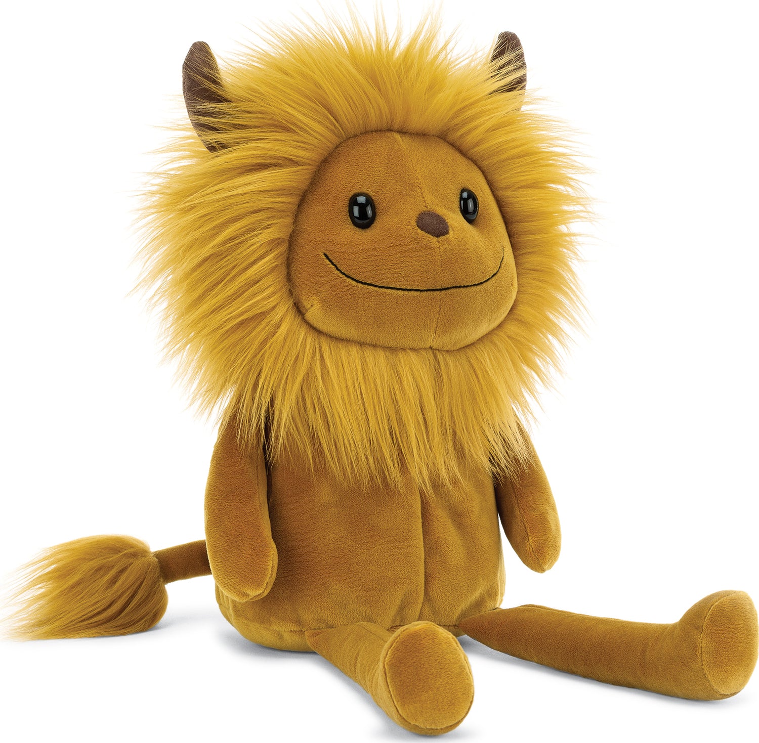 Leaping out in a flurry of mustard, Zeke Monster gives a big growl! Friendly and funky, with a silky fluff mane, soft suedey horns and a big goofy grin, this mischief-maker loves silly surprises. Dashing around on lollopy legs, Zeke is a playful prankster!