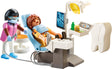 Keep your smile healthy with routine visits to The Dentist. The dentist takes an X-ray and examines the scan to check every tooth. The patient reclines in the chair and opens wide for the dentist to give the teeth a good cleaning and check for cavities. The face of the patient can be transformed from smiling to open-mouthed by turning the head. The overhead lamp helps the dentist see into the patient's mouth for examination. Set includes two figures, a movable treatment chair and a lamp, a tray for the dentist's utensils, an x-ray scan, and many other accessories. Recommended for ages four years and up.