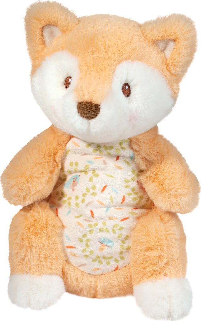 Bring a smile to your baby's face with Douglas' sweet Jordan the Fox Chime stuffed animal! Cloud soft plush fur in orange and cream colors make this lovable toy soothing to the touch and ultra huggable. Give Jordan a gentle rattle or pick up this cuddly Fox for a snuggle and the interior chime will make an enchanting musical sound. Jordan's endearing expression is depicted in infant-safe embroidery and detailed with pink airbrushed cheeks. A Douglas exclusive print brings woodland whimsy to Jordan's design and features small wreaths of green leaves surrounding birds, hedgehogs, and blue toadstools. Enjoy Douglas' plush Fox Chime on its own or shop Douglas' full Jordan the Fox collection to put together an appealing set!
